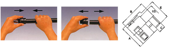 組裝圖 組立:軟管直接插入接頭 拆卸圖 拆卸:向左按緊接頭,軟管往右旋拉。